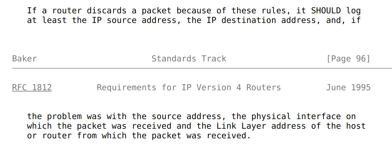 Even more interesting that in next section of RFC we have mention that implementation must provide option to log such so called martian packets (or simply martians):