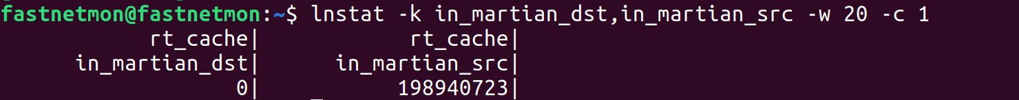 lnstat -k in_martian_dst,in_martian_src -w 20 -c 1