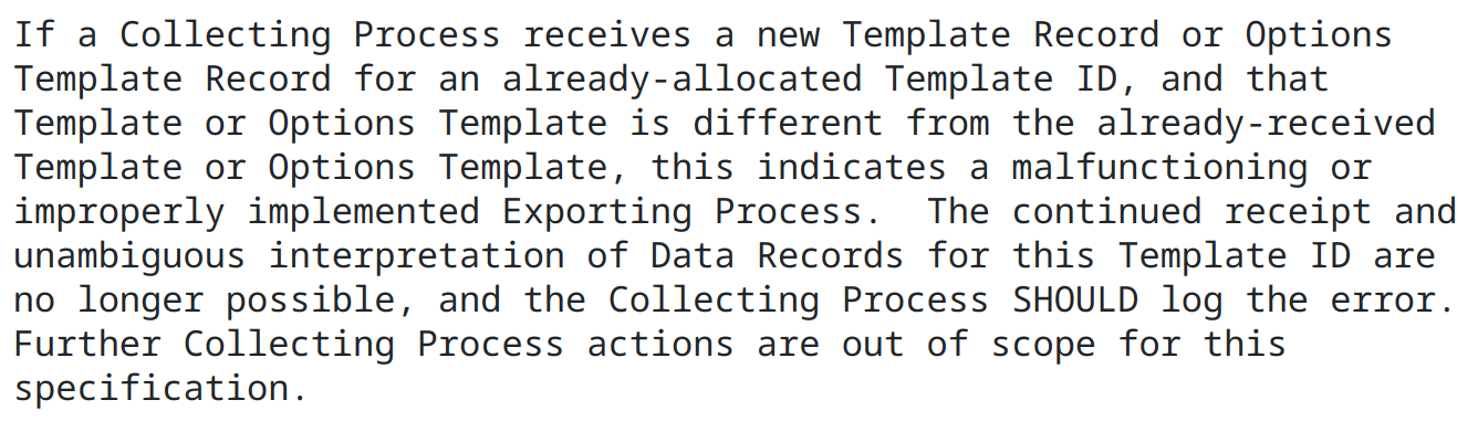 What does IPFIX RFC says about template content updates? It completely bans it: