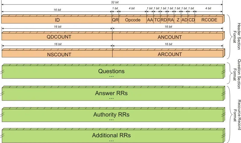 The next step is to try to tell the DNS server what we specifically want from it. Let’s look on DNS message diagram to get some idea about way to make query (thanks to authors of this image):
