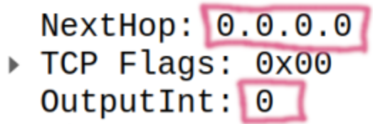 }After that we need to look on "Output Interface" field and "Next Hop" as 0 value for first and 0.0.0.0 for second have special meaning "dropped".