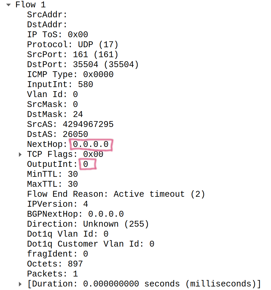 We use our own open source parsers (Netflow v9, IPFIX) to decode telemetry we receive from network equipment. Such pretty unique approach allows us to look on different implementations of traffic telemetry export from perspective of protocol implementation and from operational standpoint.